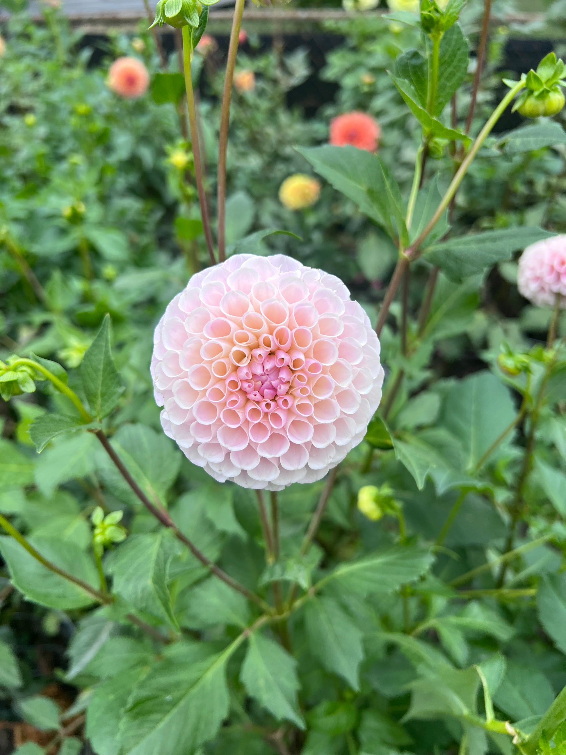 Compact ball blooms measuring about 2.5–3″ across are produced in abundance on tidy plants. Growing 3.5–4 ft tall, this variety is a reliable, high-yield option for cutting gardens and consistent harvests.