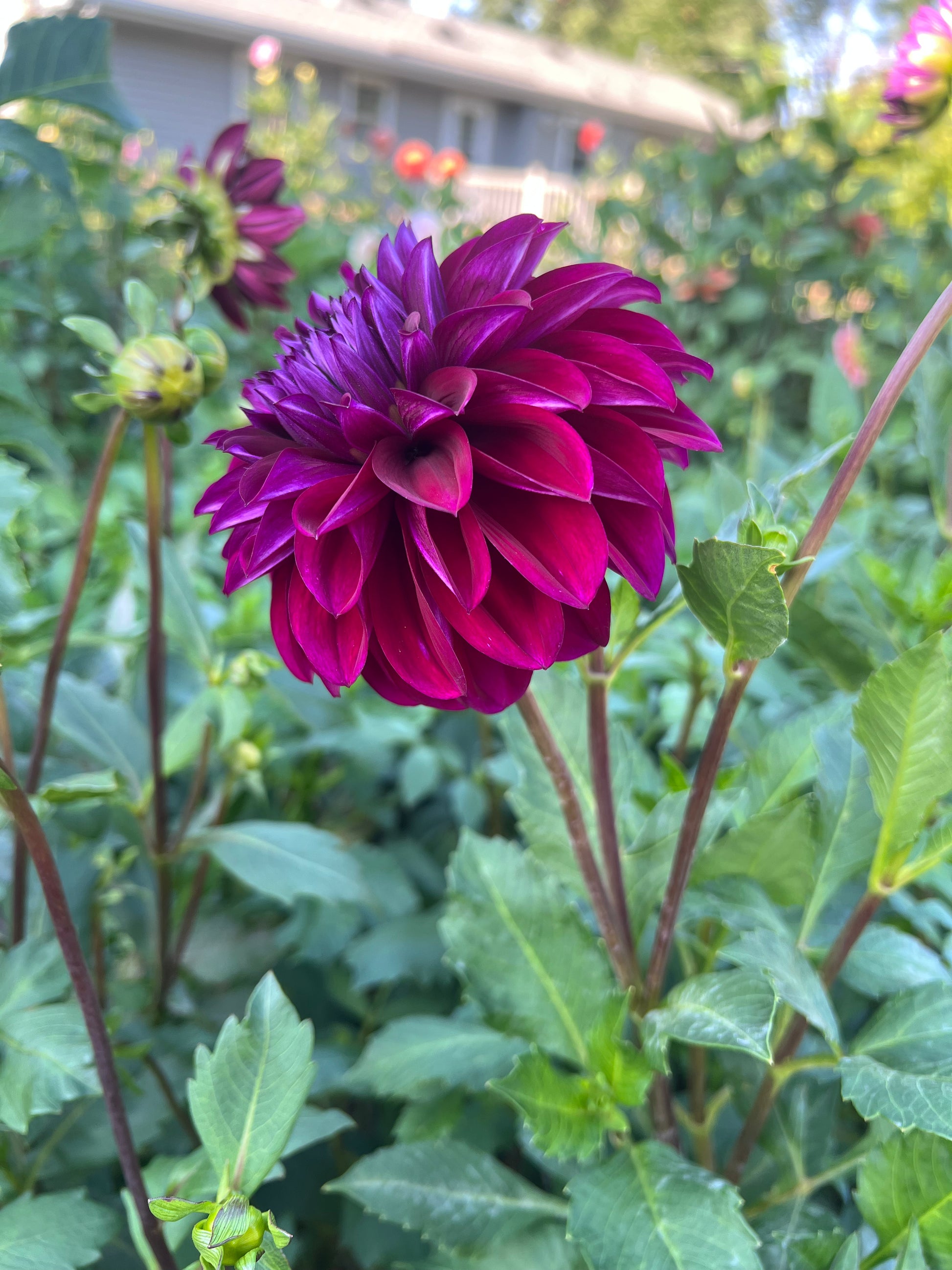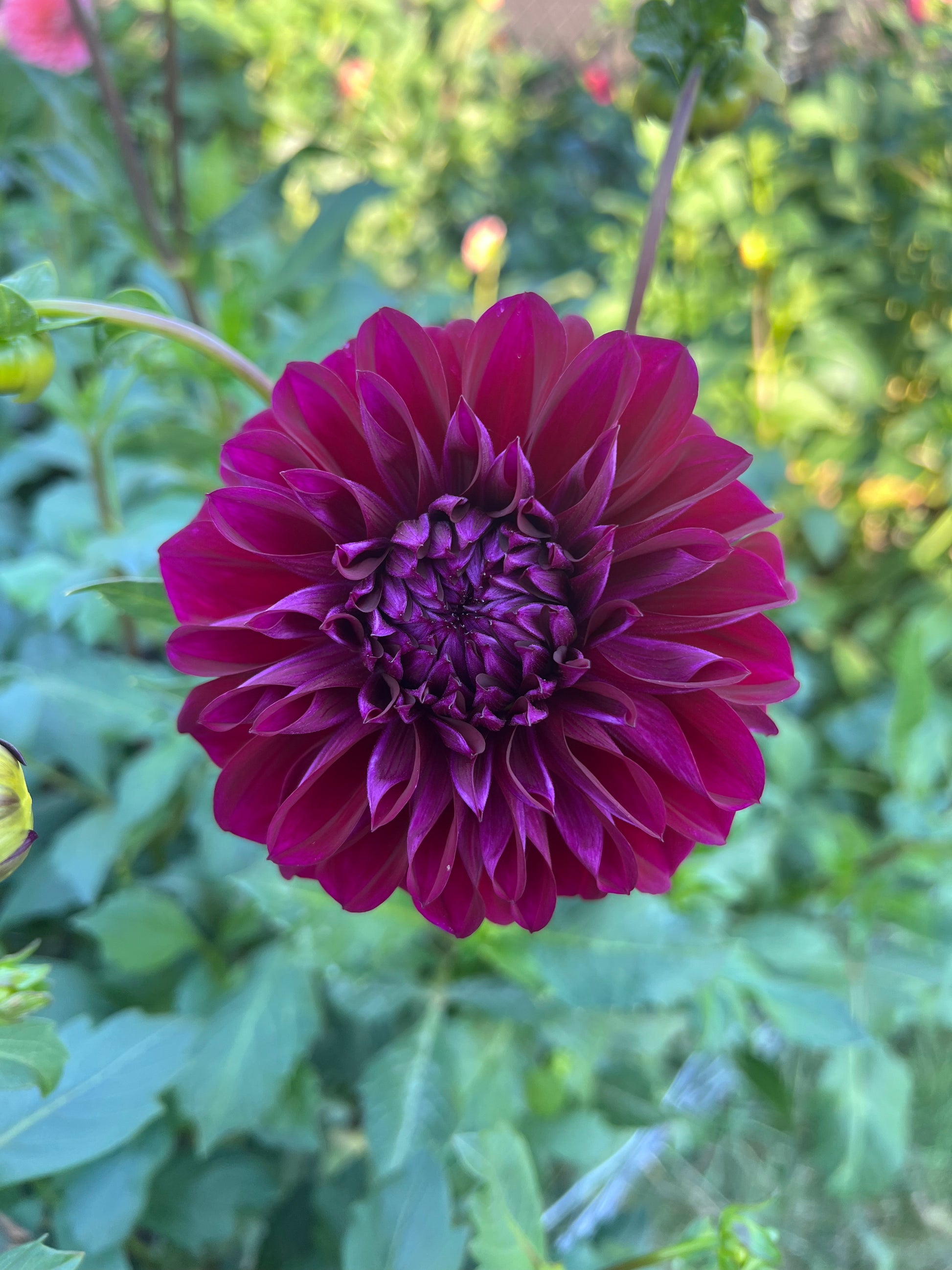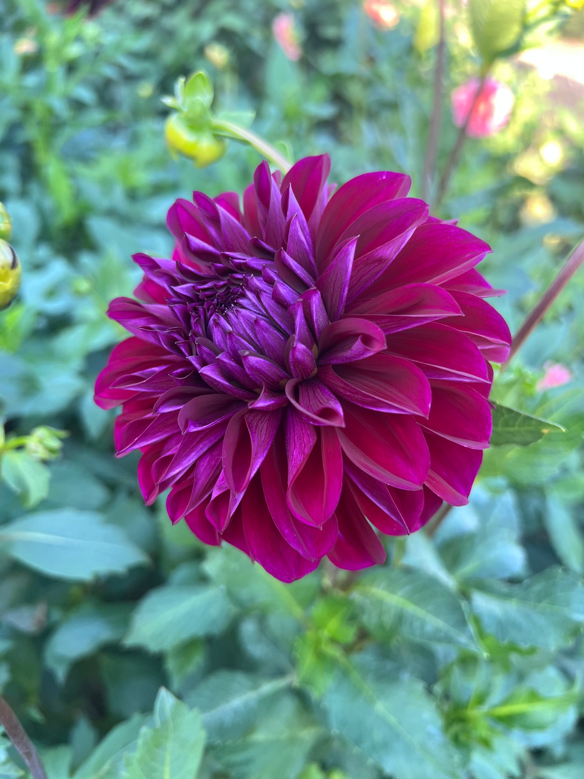 A striking Formal Decorative variety featuring blooms in rich shades of deep purple, raspberry, and burgundy, with perfectly layered, slightly pointed petals on strong, long stems ideal for cutting.