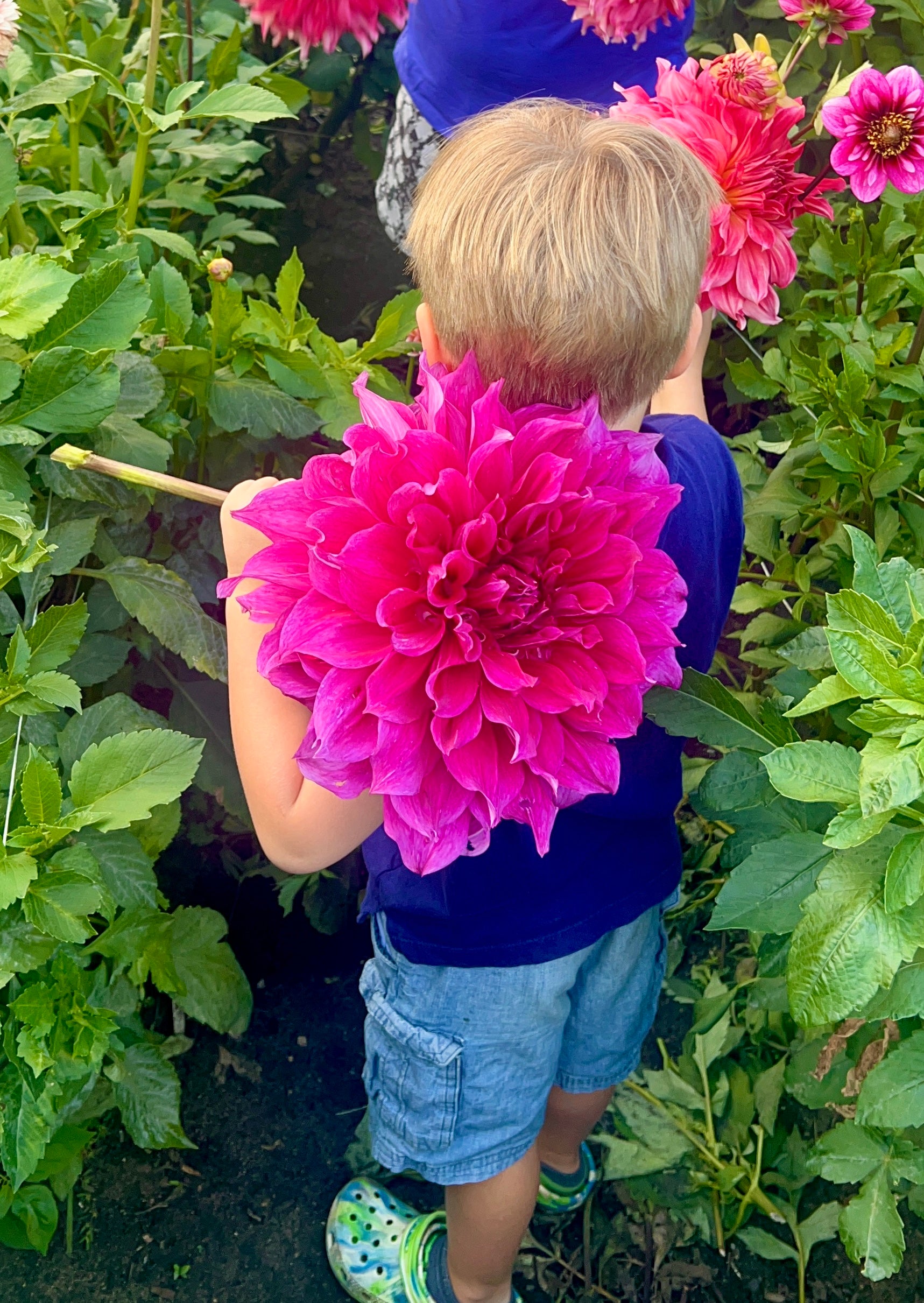 A late-season showstopper, producing enormous 12–14 inch fully double blooms in rich ruby tones blended with lighter pink, fuchsia, and hints of orchid-lavender. Awarded the RHS People’s Choice Award, it thrives in sunny, spacious borders and is exceptional for dramatic, oversized cut flowers. Our kids loved these - wish we had a better standalone picture!