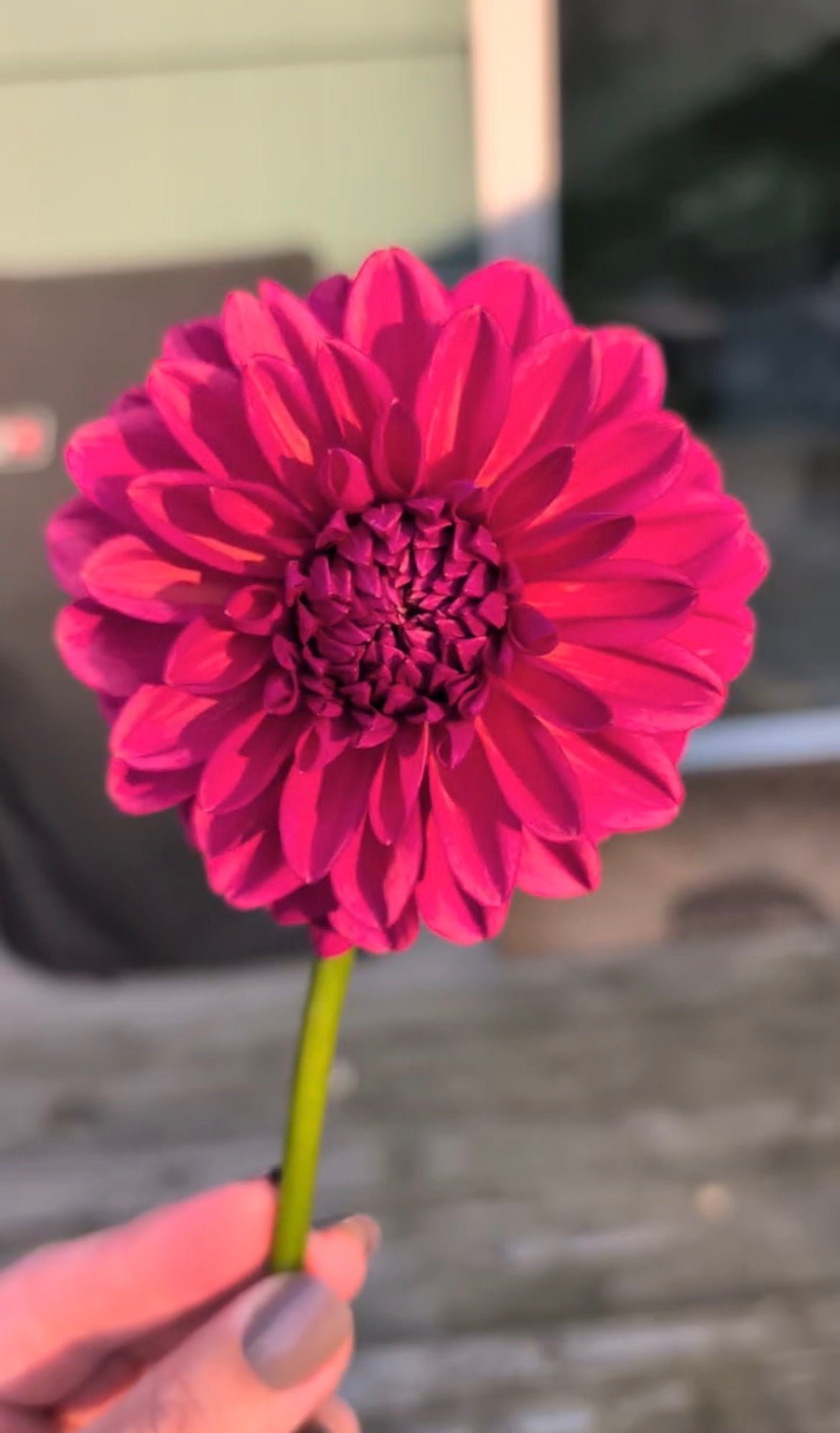 We have had this plant for the past 3 years and spent a lot of time researching her name. It was sold to us as Muchacha but the coloring is not the same. This beautiful dahlia has a gorgeous crimson red petal with a slight yellow high at the center. It has been recommended to us that this is most likely Perch Hill.